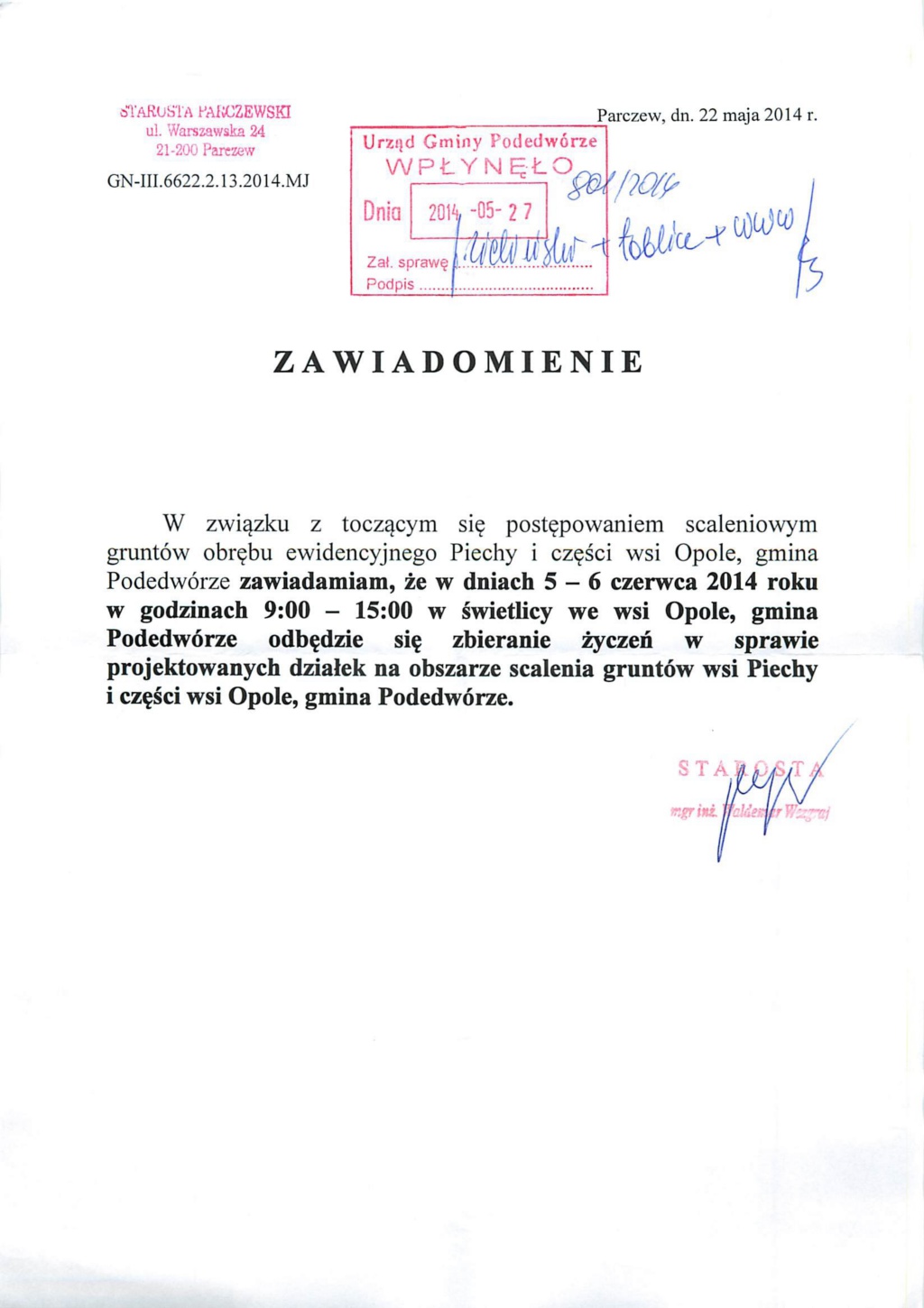 Gminny Ośrodek Pomocy Społecznej w Podedwórzu informuje, że w dniu 15 maja 2014 r. weszła