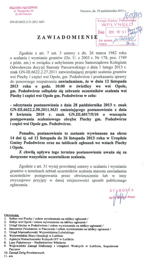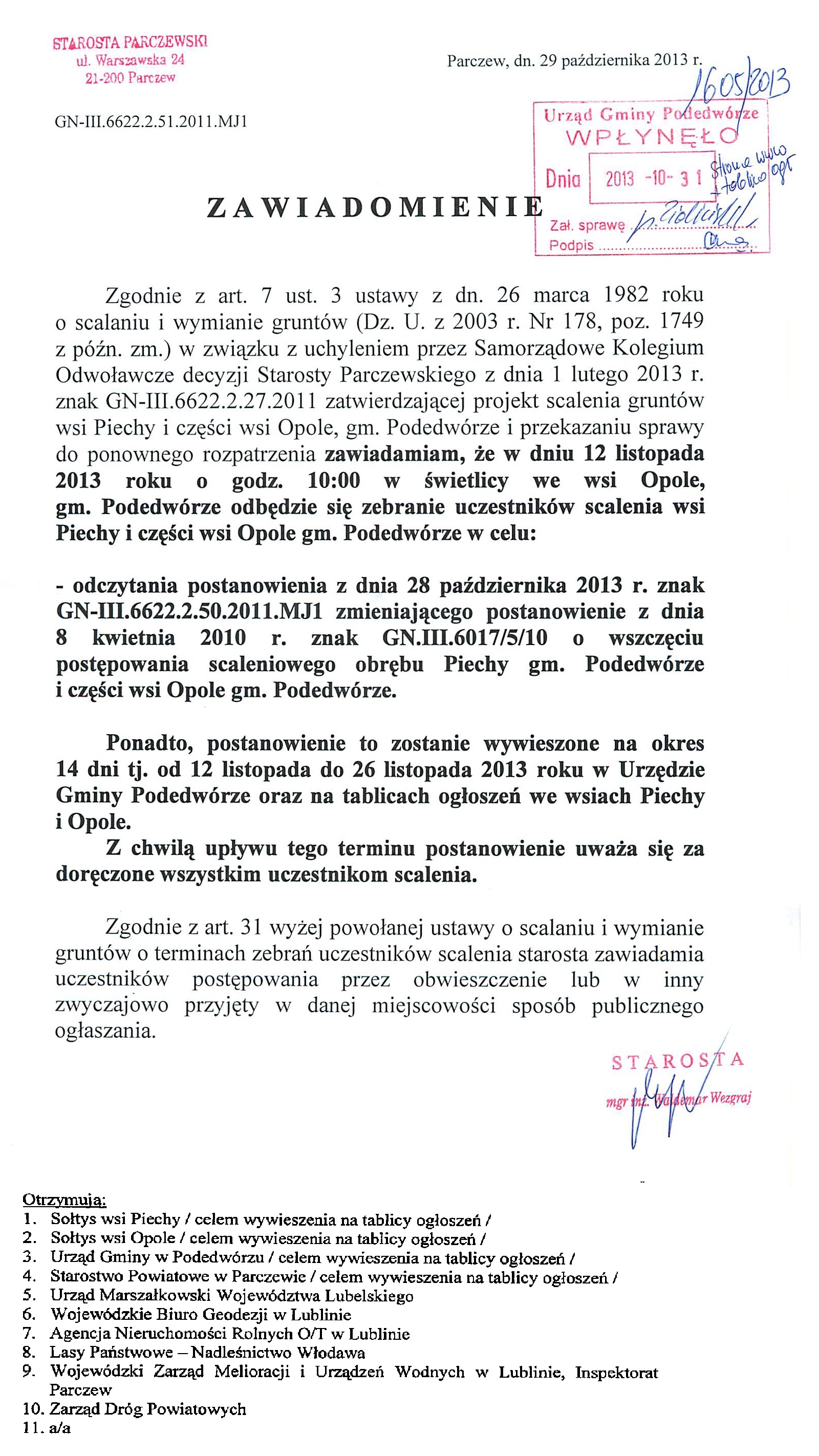 Zawiadomienie o zebraniu we wsi Opole