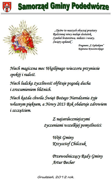 W dniu 28 grudnia 2012r. w gminie Podedwórze odbyła się XXX sesja Rady Gminy.